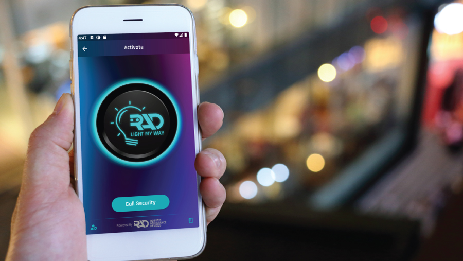 University student activates RAD Light My Way when approaching a parking garage.