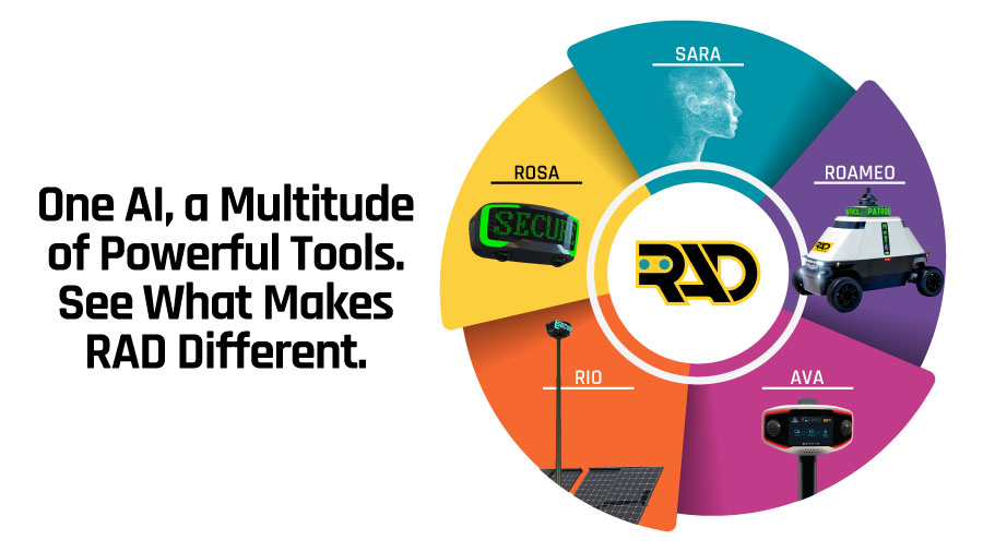 From proactive patrol to intelligent monitoring, RAD’s unified AI platform powers SARA™, ROAMEO™, AVA™, RIO™, and ROSA™. These solutions are transforming how security is deployed, managed, and scaled across industries.