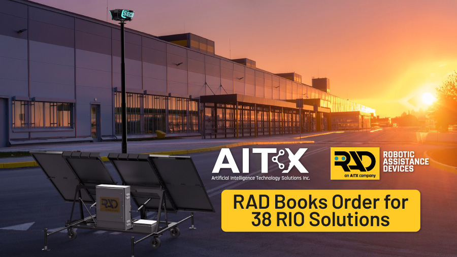 Detroit, Michigan, August 30, 2023 – Artificial Intelligence Technology Solutions, Inc., (the “Company”) (OTCPK:AITX), a global leader in AI-driven security and productivity solutions along with its wholly owned subsidiary, Robotic Assistance Devices, Inc. (RAD), today announced that it has received an order for 38 of its increasingly popular RIO solar-powered security towers. Not named due to nondisclosure agreements, the Company noted that this direct client is a prominent shipping and transportation company with over 250 distribution centers throughout the United States. This client has thoroughly tested RAD through 9 devices previously ordered and deployed at 2 locations. These newly ordered 38 RIO devices, completing their first phase of planned rollouts, consisting of 24 RIO 360 units, and 14 RIO 180 units will be deployed at 10 of the client’s distribution centers. The Company also noted that additional expansion orders of a similar quantity are expected as part of the second phase of rollouts, and that the client may be named in a future press release and case study.